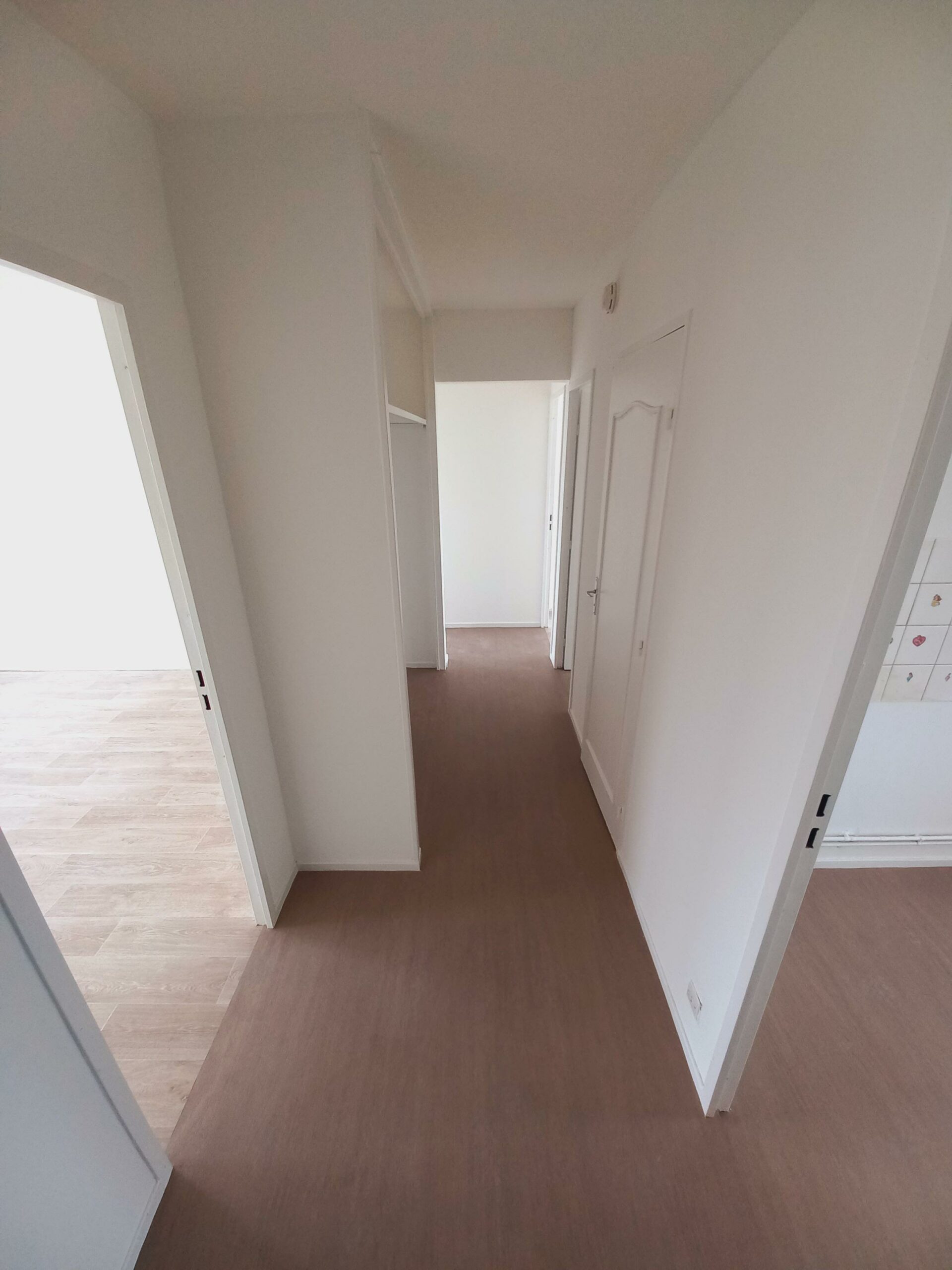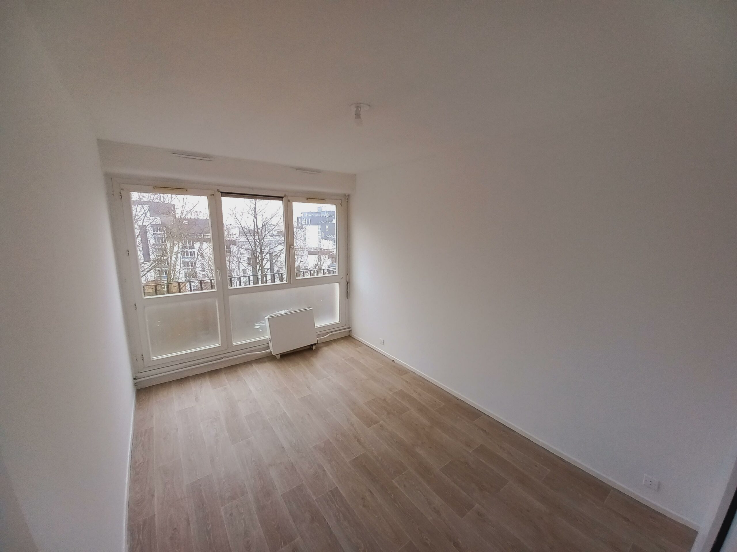 L’appartement a été rénové (murs, plafonds, menuiseries en blanc et sols remplacés)